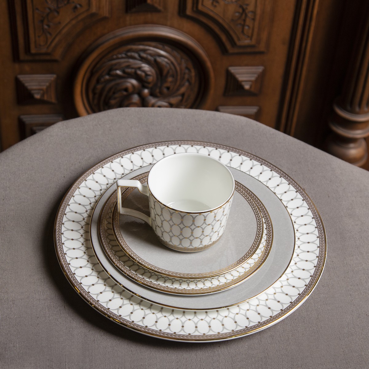 | Набор из 5 предметов: тарелка 28см, тарелка 23 см, тарелка 17 см, чайная чашка с блюдцем, Renaissance Grey, Wedgwood, фарфор | 6 |