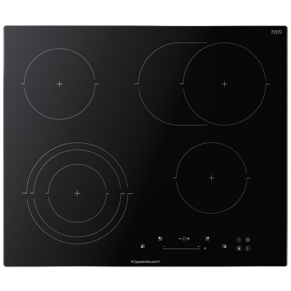 1 трехконтурная варочная зона Ø 210, 180 или 120 мм / 2300, 1600 или 800 Вт