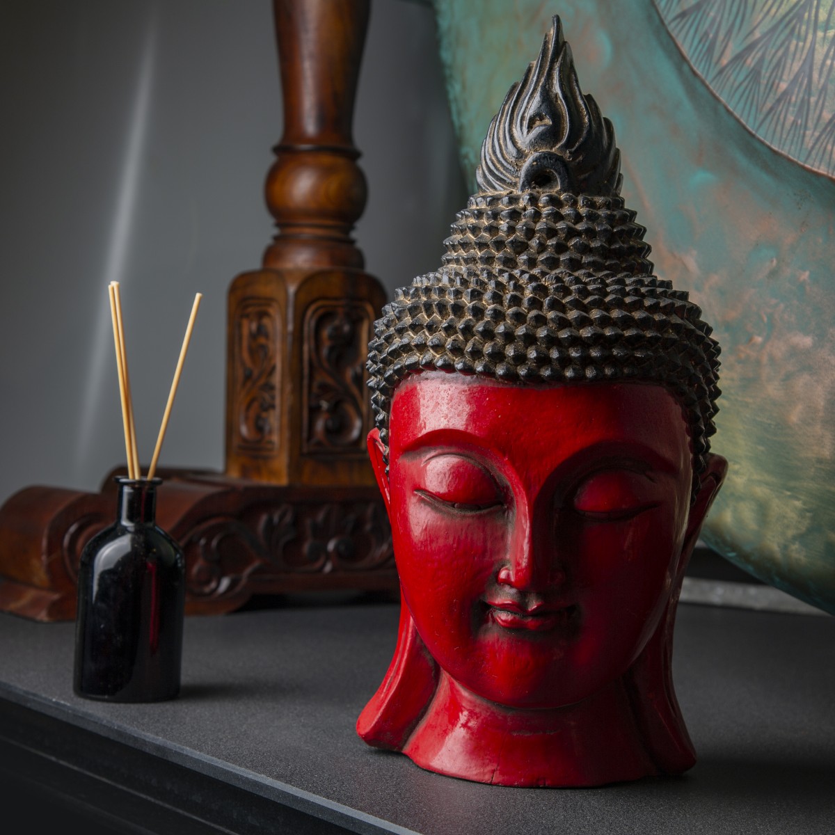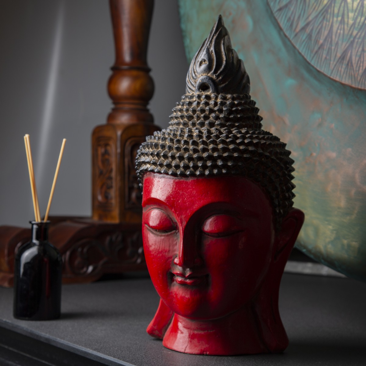 Фигурка Голова Будды, красная, 40см, дерево, Chateau Collection