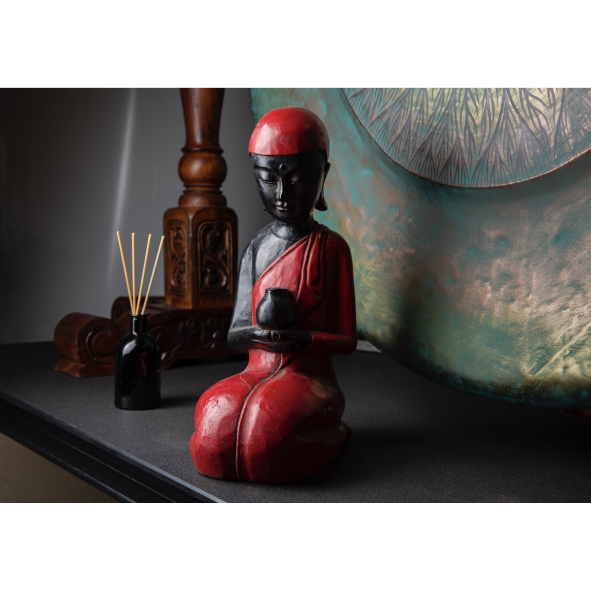 CC-MSITB-R Фигурка Монах, сидящий, большой, красный, 40см, дерево, Chateau Collection