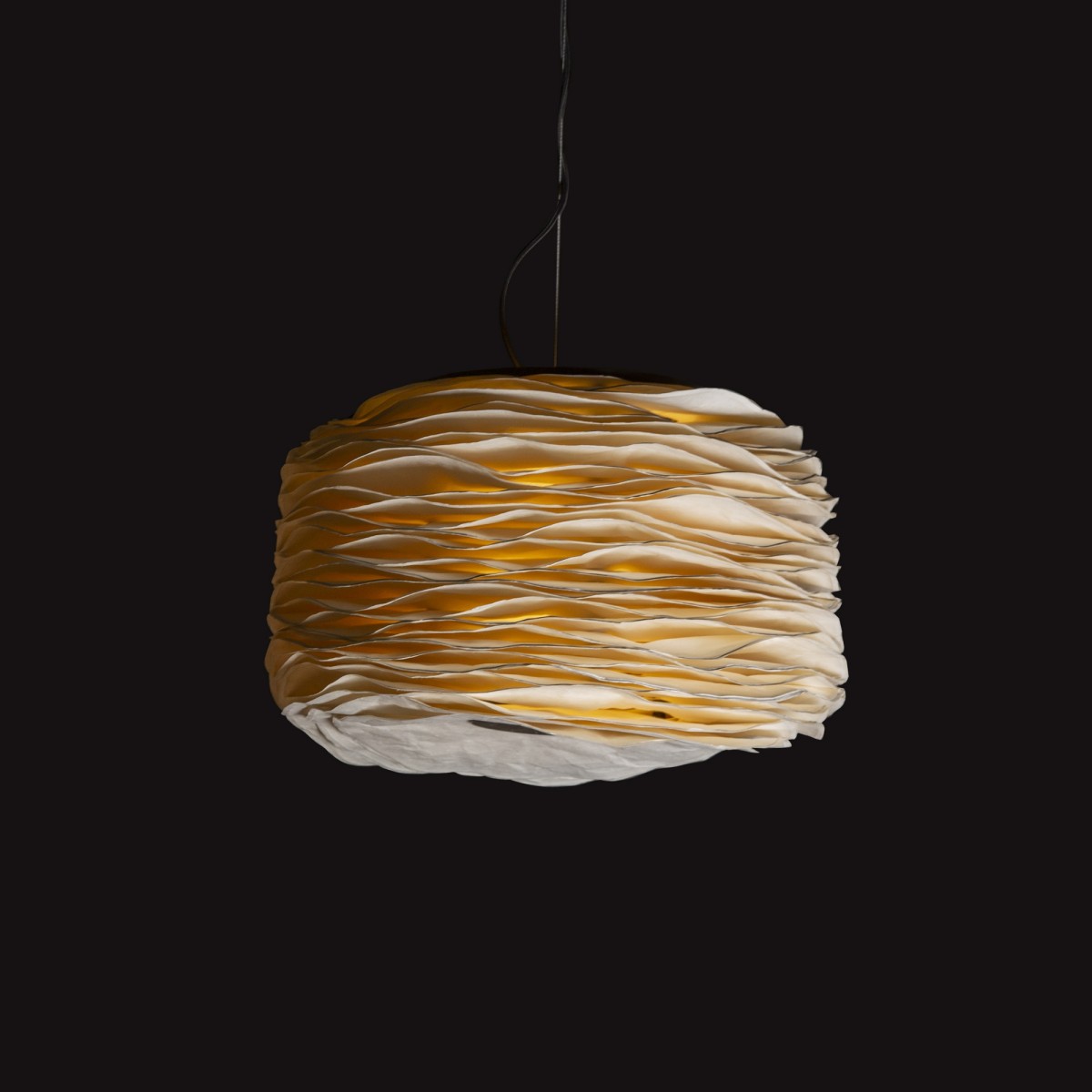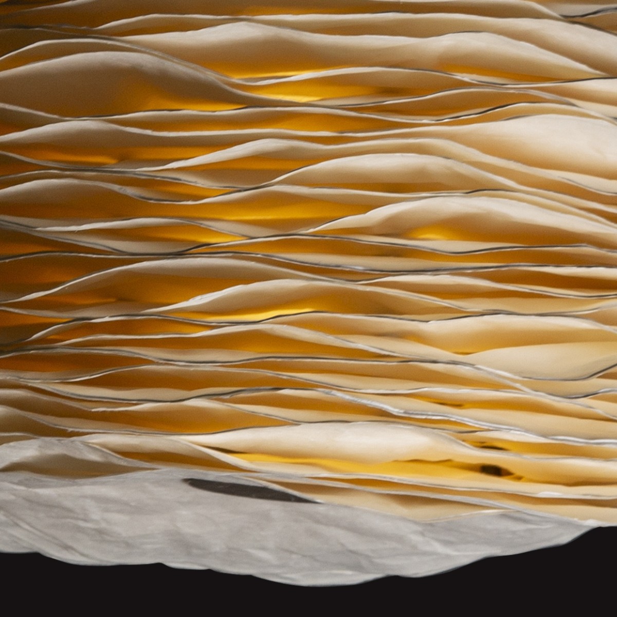 Коллекция Осиный улей (Wasp hive). Изготовлена вручную. Мы были одержимы бумагой и качеством освещения, рассеиваемого этим материалом. Натуральная бумага ручной работы из бананового волокна – основа коллекции. Нас привлекает несовершенство повторов, легкая волна беспокойства, причудливая динамика изгибов. Каждый светильник серии напоминает природную форму осиного улья, будоражит ассоциации и создает свою неповторимую атмосферу.