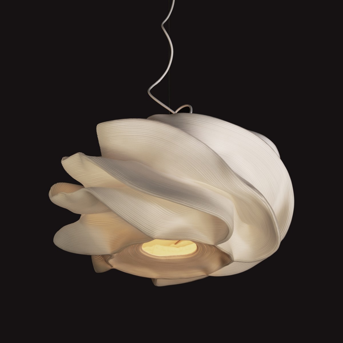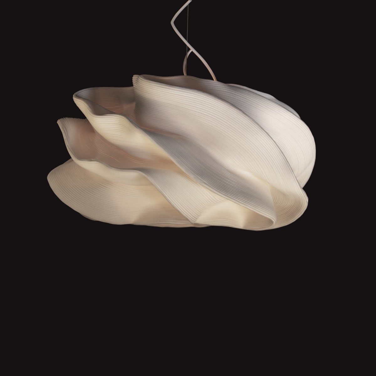 Коллекция Облака (Clouds). Изготовлена вручную. Эта серия передает эффект воздушного облака, парящего в невесомости. Абажуры выполнены из необычного материала – застежек-молний. Один слой за другим нарушает симметрию, уводя взгляд выше и выше. Тепло ручного труда и полет дизайнерской мысли формируют неожиданную концепцию всей коллекции. Вы непременно будете наслаждаться эстетикой и новым смыслом функциональных светильников этой серии.